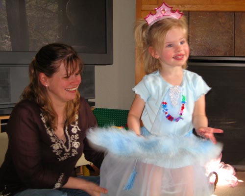 Clara explains that her new dress and fan are for singing "Sisters" from White Christmas. (And you thought that was just a phase.) < previous | next >