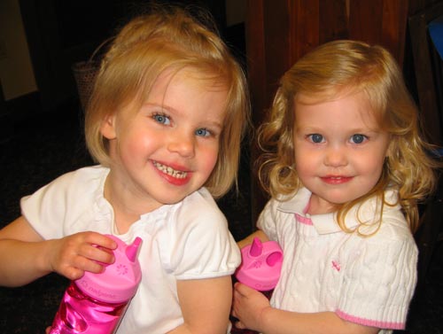 Clara and Sierra (Amy's cousin's daughter so that makes her Clara's... uh... cousin?) refuel during Gramps' birthday party. < previous | next >