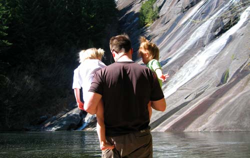 Clara and Lilly look down into Lipsy Lake while Otter Falls roars in the background. < previous | next >