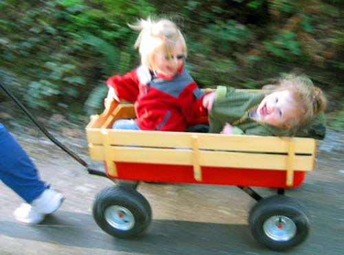 Sure, it's out of focus, but it illustrates the friendship developing between Clara and Lilly. The two shared the wagon during a two mile, after dinner walk. < previous | next >
