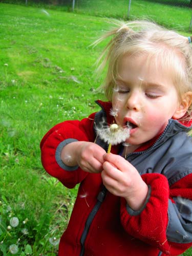 I made the mistake of showing Clara how much fun dandelions could be and it was all downhill from there. (Actually, it was up the hill to that one, down the hill to that one, over to that one...)