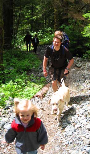Clara, Tokul, and I (and Lilly tagging along) chase after Amy who stopped to take a picture. < previous | next >