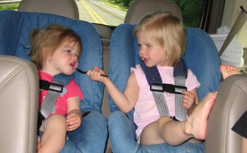 Clara shares her ice cream with Lilly on the way home from Barclay Lake.