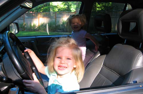 Clara and Lilly play in the front seat of the truck while I moved car seats around prior to a hike. Clara asked in her sweetest voice, "Please, Daddy, can I have the keys, please, Daddy?" What else could I say other than, "HELL, NO!" (Ok, that's what I wanted to say, but I didn't actually say that.)
