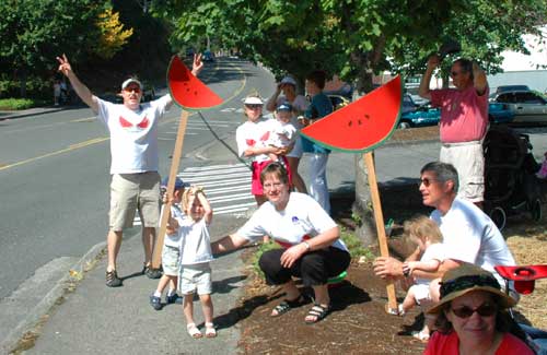 The official Melons Support team cheers on the Melons as they arrive at the afternoon cheering station on day two. < previous | next >