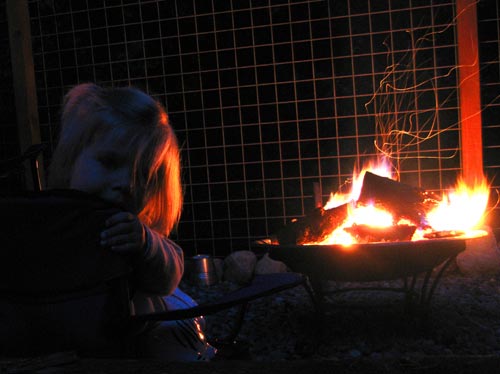 Clara peeks back over her chair while enjoying a special late night by the fire.