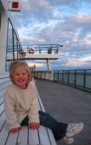 Clara takes a break on a bench aboard the good ship Wenatchee on route from Bainbridge Island to Seattle. < previous | next >