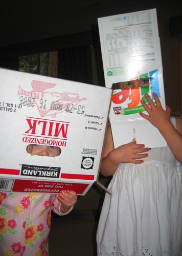 Lilly and Clara spent much of Saturday fascinated by their fancy new hats instead of the raging storm outside. Now that's what I call cabin fever. < previous | next >