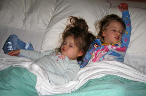 The girls set precedent the first night by going to sleep and sleeping hard... for a very short while. Shortly after one would wake up the other who'd wake up Henry who'd wake up the other who'd...